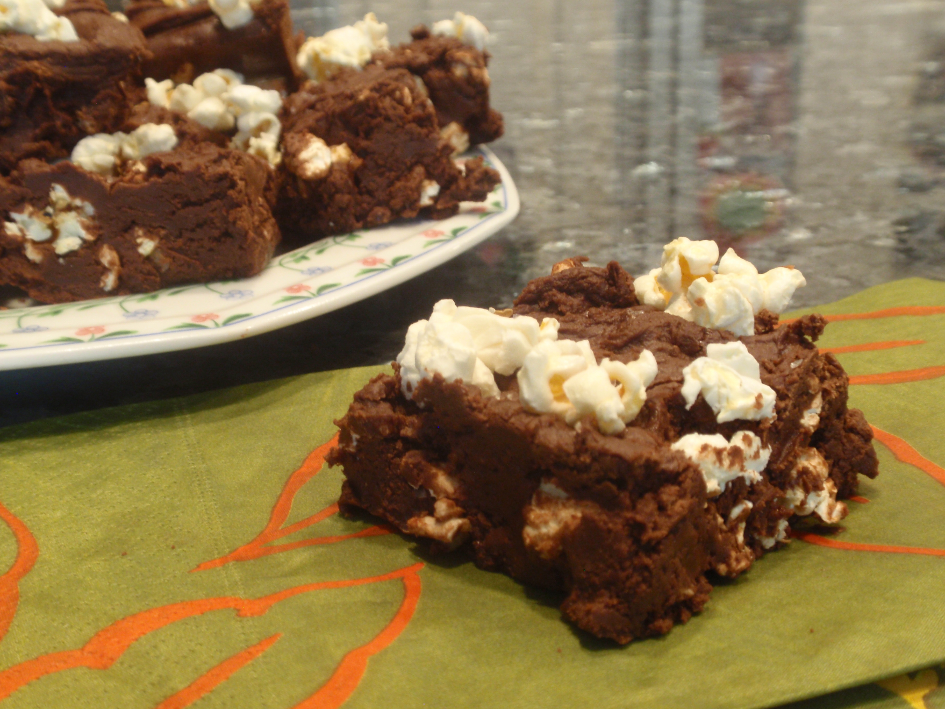 As for the fudge, well, that was simple too.  While most fudge recipes require condensed milk, it is certainly not a necessary ingredient.  The fudge in this recipe is, just like the popcorn, easy and delicious.  If you don’t want to use popcorn, top it with shredded coconut, or perhaps crushed peanuts, or maybe even vegan marshmallows.  The sky’s the limit.