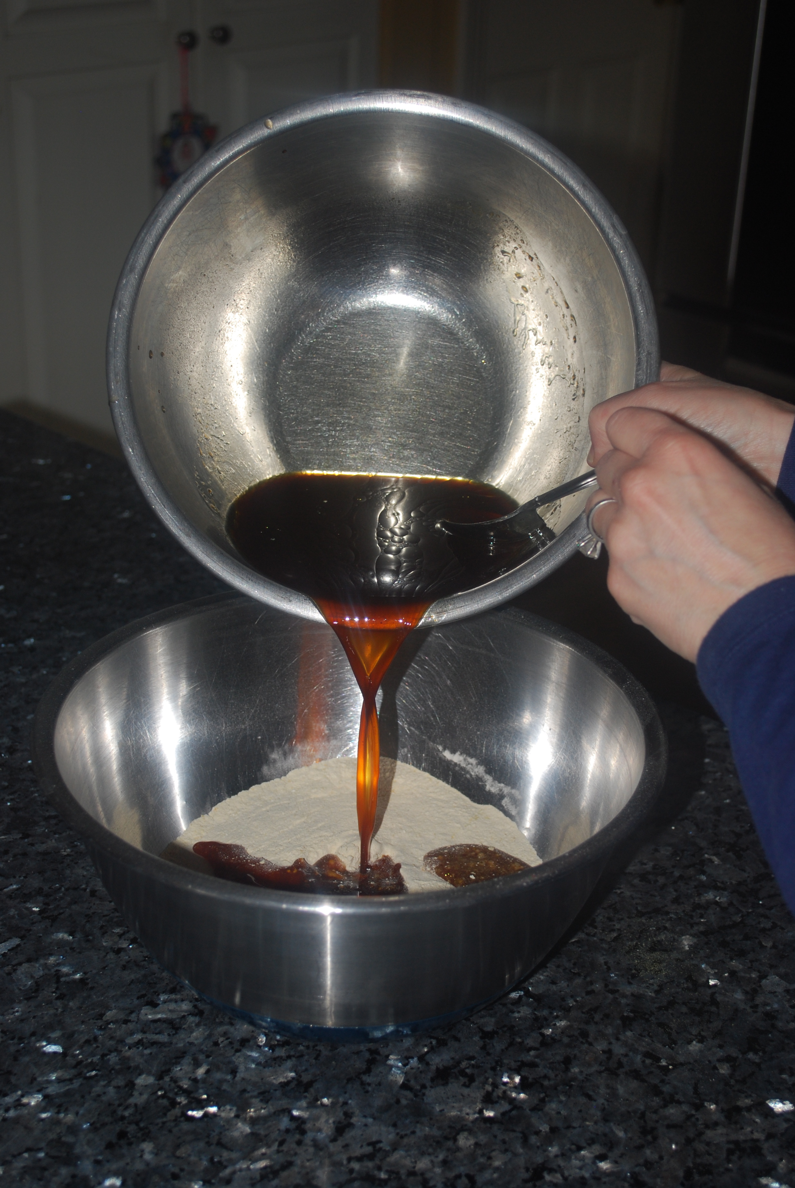 Pour the wet into the dry and mix with your hands and knead until it is all incorporated.