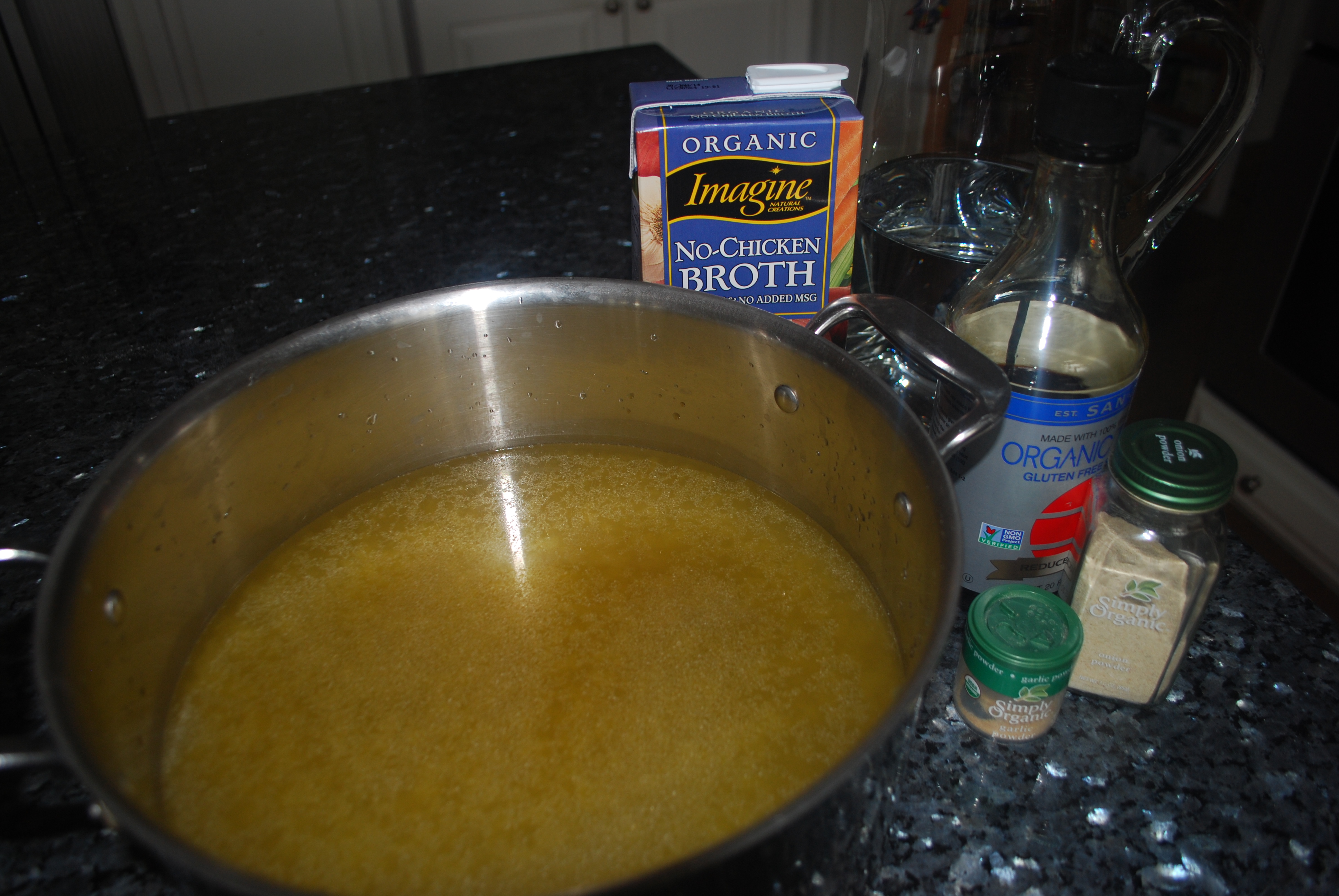 This recipe is adapted from Isa Chandra Moskowitz’s Vegan with a Vengeance. All Isa’s cookbooks are incredible!! The actual work time is minimal, maybe 20 minutes tops, but it does take a lot of time on the stove, so plan accordingly. That is why I usually make my seitan over the weekend. The recipe will yield enough seitan for 2 family meals or 4 meals for one or two people. I actually double the recipe and thereby get enough seitan to make 4 meals for my family, and I freeze at least half of it which is great! Then, I just defrost it in the fridge the night before I want to use it and it is ready to go!