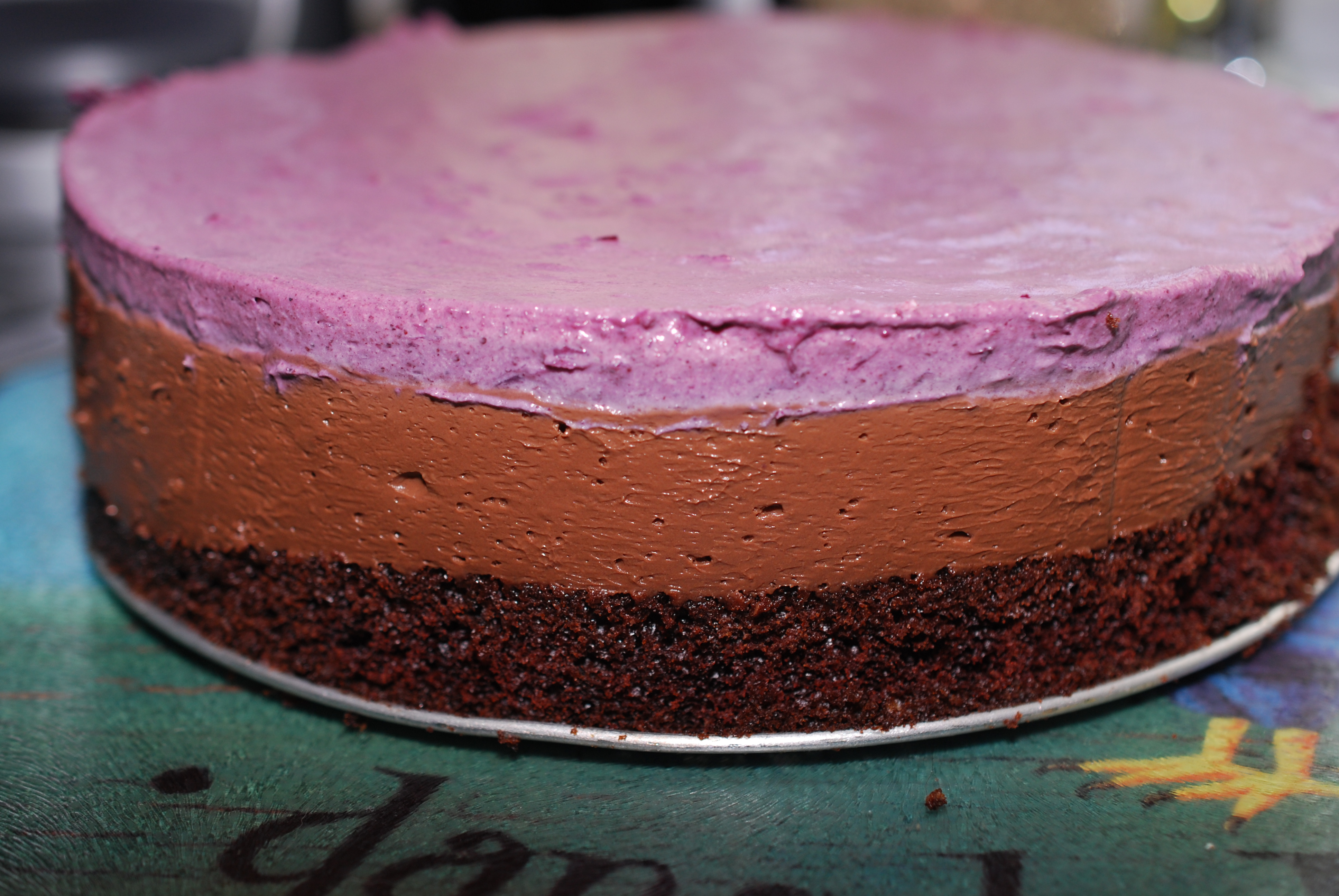 This cake was the perfect end to our memorial day celebration today. It was rich and creamy and cool and refreshing, not to mention pretty to look at. Making it did take some time, although it was easy and well worth the effort. Next time I will try strawberries and raspberries and blackberries too! Any combination would be wonderful! I must say that the chocolate cake is a recipe I found online when I first started cooking vegan. I copied it down and have made it many times since, but unfortunately I can’t find it online anymore and so am unable to give credit to whomever created it. Sorry! Also, the chocolate cake recipe makes 3 layers and only one is needed here. You can try to cut the cake recipe into thirds, or you can freeze the other two layers for later. The best option is what I did, which is break the other two layers into pieces and use the extra whipped cream from this recipe and some fresh or frozen berries and make a quick and delicious trifle. I have used Agar Agar on a few other recipes and every time I use it I proclaim that it is awesome! It is a tasteless, vegetable gelatin derived from sea vegetation. For those of you who are unaware – gelatin is absolutely horrid. It is made of animal bones (along with animal skin, hooves, tendons, ligaments, and cartilage) all boiled together into a goo that’s added to all kinds of candy and baked goods. Agar Agar has none of that nastiness! It works perfectly in this recipe to hold the blueberry mousse together. You can find it at health food stores or specialty markets like Whole Foods, as well as on online.