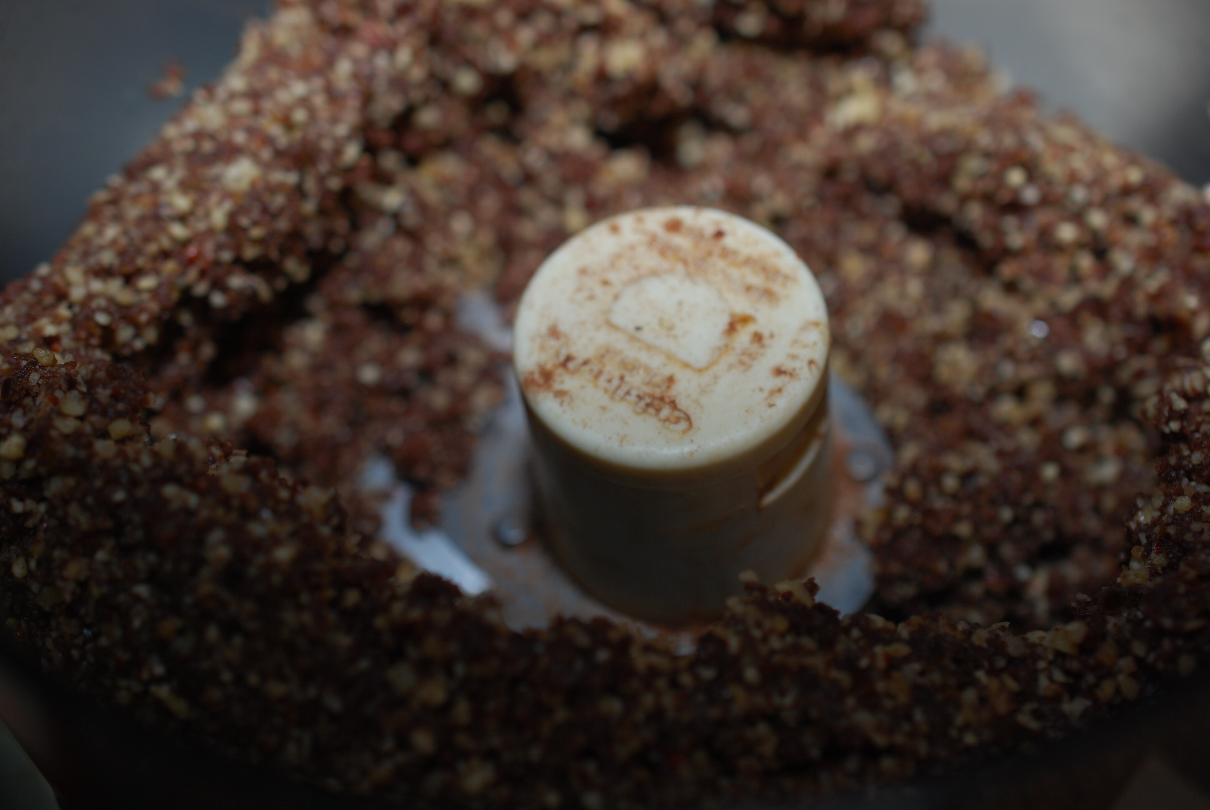 Process all together in food processor and then press into the bottom of a lightly greased 8” springform pan.