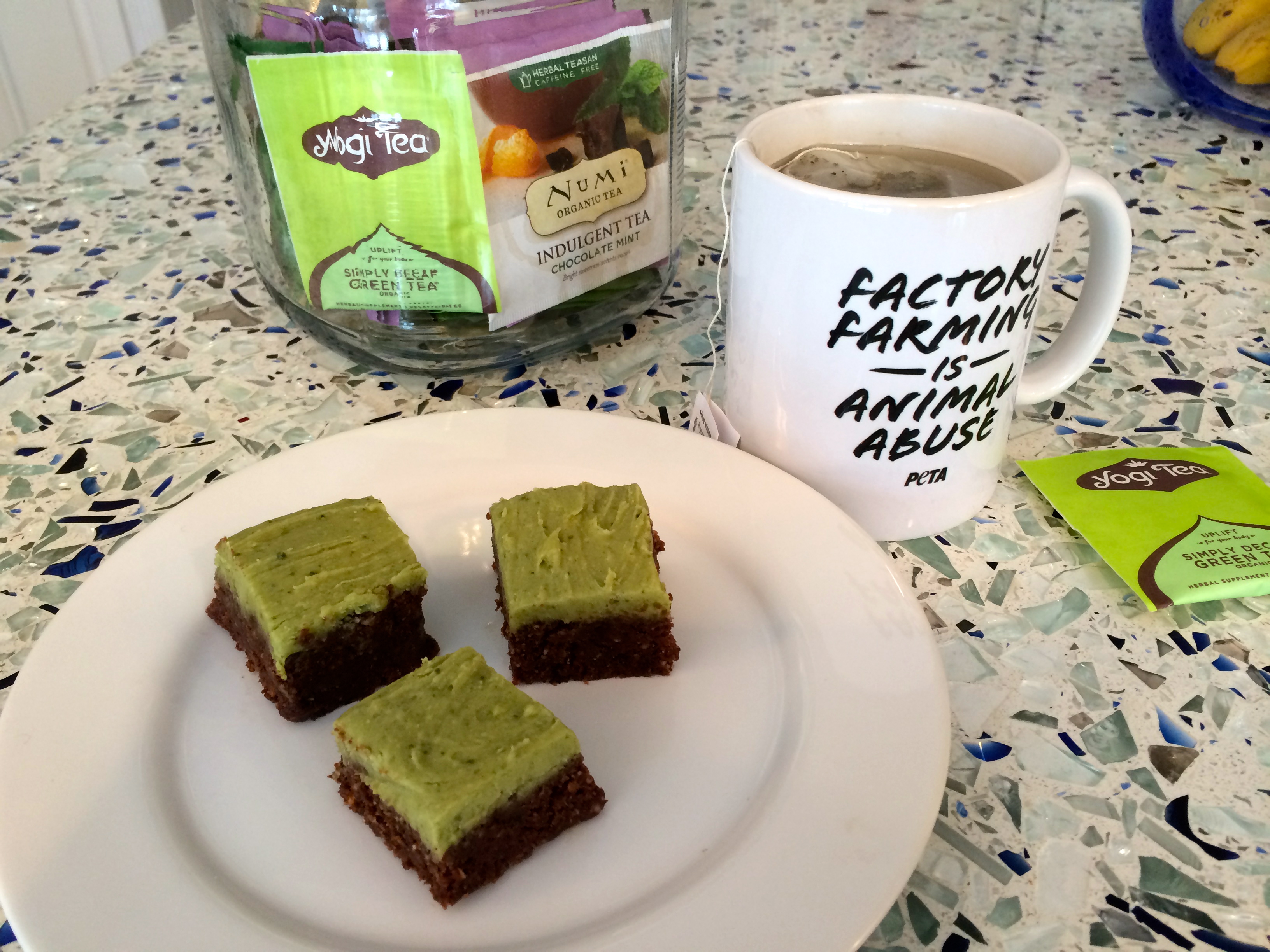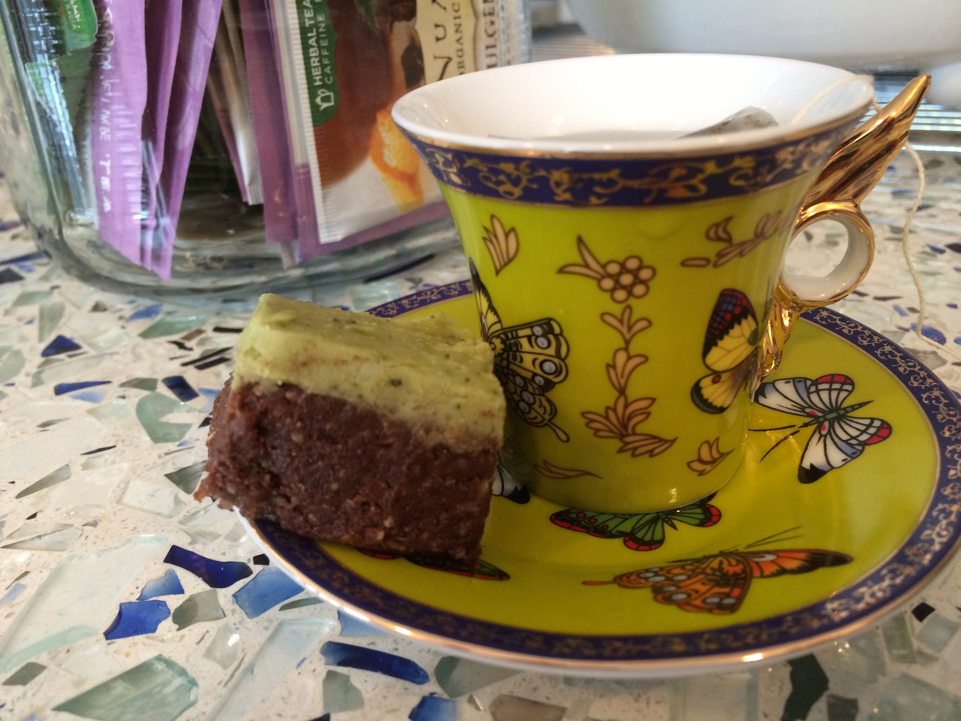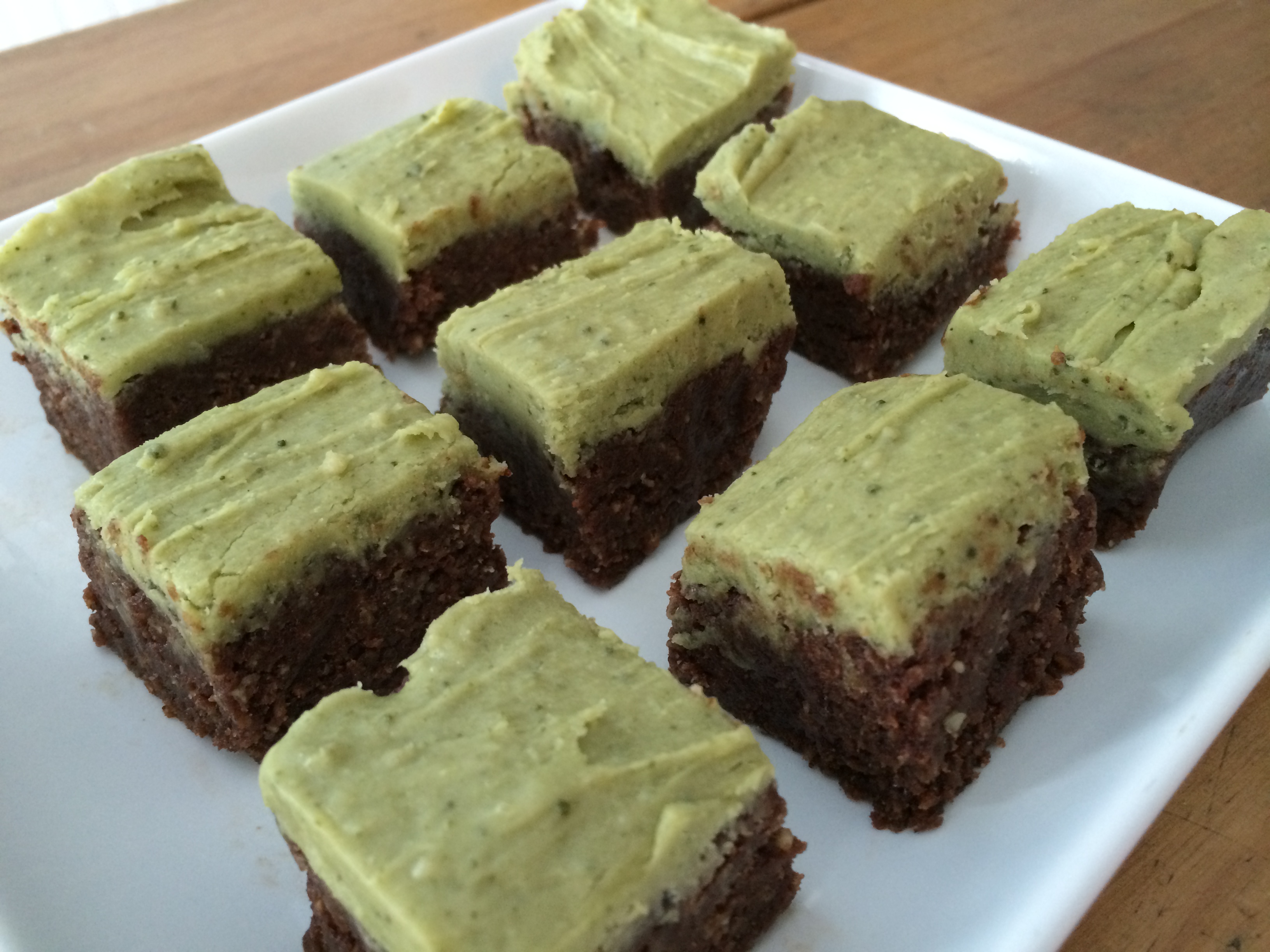 I love making things for St. Patricks Day – probably because my favorite color is green! You can be sure there will be tons of kale and avocados and olives on my plate, and this year I also wanted to make a special dessert to mark the day. I love using matcha powder. It is just green tea made into powder form and it is wonderful to cook with. It also has amazing health benefits. In addition to providing trace minerals and vitamins (A, B-complex, C, E, and K), matcha is rich in catechin polyphenols – compounds with high antioxidant activity. These compounds offer protection against many kinds of cancer, help prevent cardiovascular disease and slow the aging process. They also reduce harmful cholesterol in the blood, stabilize blood sugar levels, help reduce high blood pressure and enhance the resistance of the body to many toxins. The most important polyphenol in matcha is EGCG (epigallo-catechin gallate), which is the subject of many medical studies. Matcha has a significant amount of dietary fiber and practically no calories. That’s a lot of good stuff for one deliciously green powder. Combine that with these raw brownies, and you get an easy to make dessert that is worthy of special holiday recognition! Enjoy!