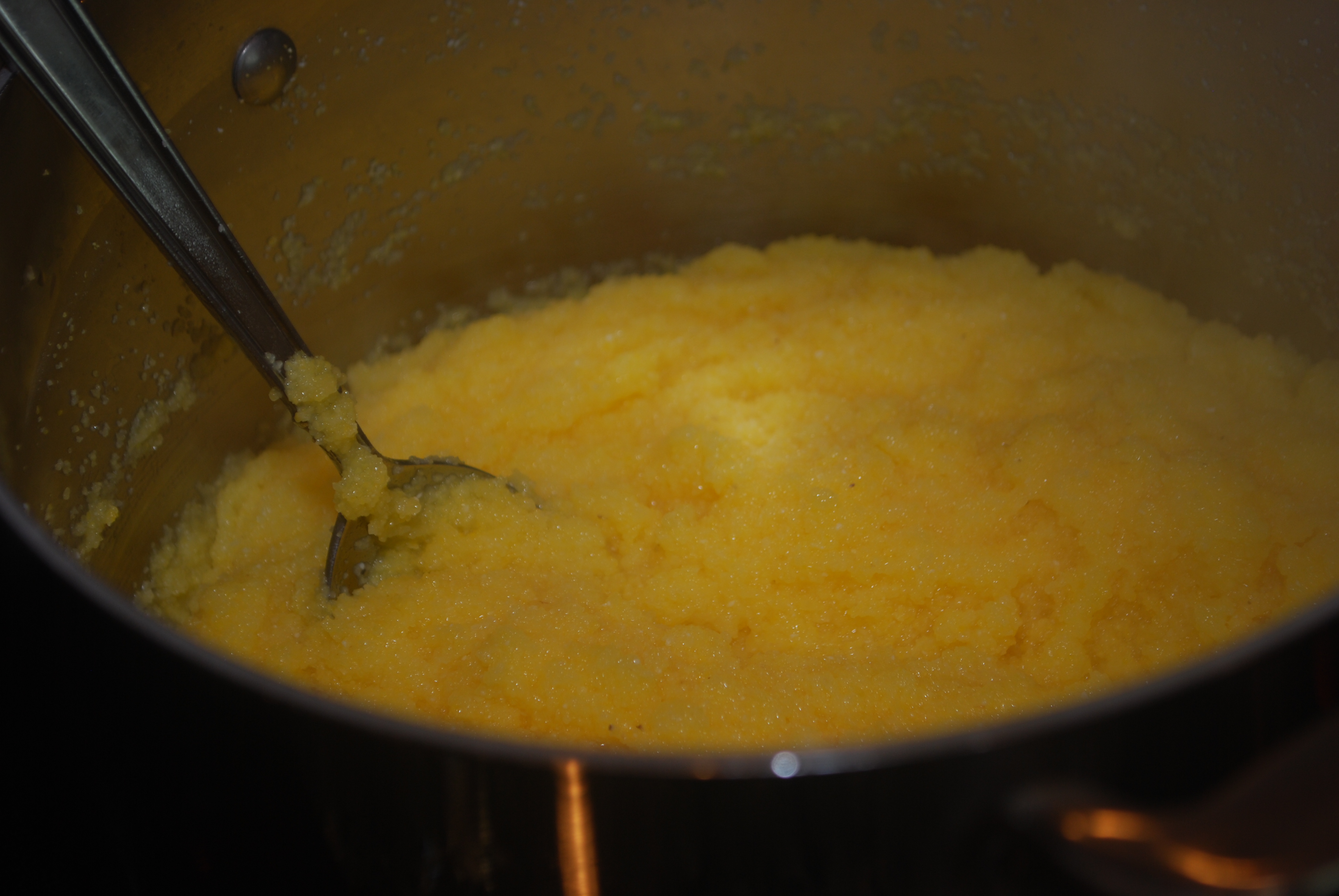 In a large pan, bring 3 3/4 c of water to a boil. Once boiling, decrease heat to medium high. Give the chickpea mix another stir in case it has separated a bit, and then, while stirring the water with a wooden spoon, slowly add it to the simmering water. (The wooden spoon is important because it will start to splatter without it so be careful.) Decrease heat again to medium low and cook about 5 minutes, stirring occasionally.
