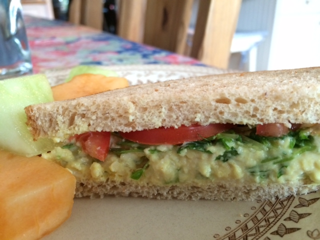 Just cut pieces of the tofu from the dish – however much you would like to use, and mash with a fork until it’s the consistency of egg salad. Don’t make it too smooth – there should be some larger pieces. Next, add whatever ingredients you like. You can’t go wrong. I like to add a bit of vegannaise, chopped onion, chopped celery, 1/8 t turmeric, salt and pepper for the basic dish. But you can get creative and add capers, pickles, olives, baco bits, sun dried tomatoes (maybe not all together)… You will be astounded how much like egg salad it is!