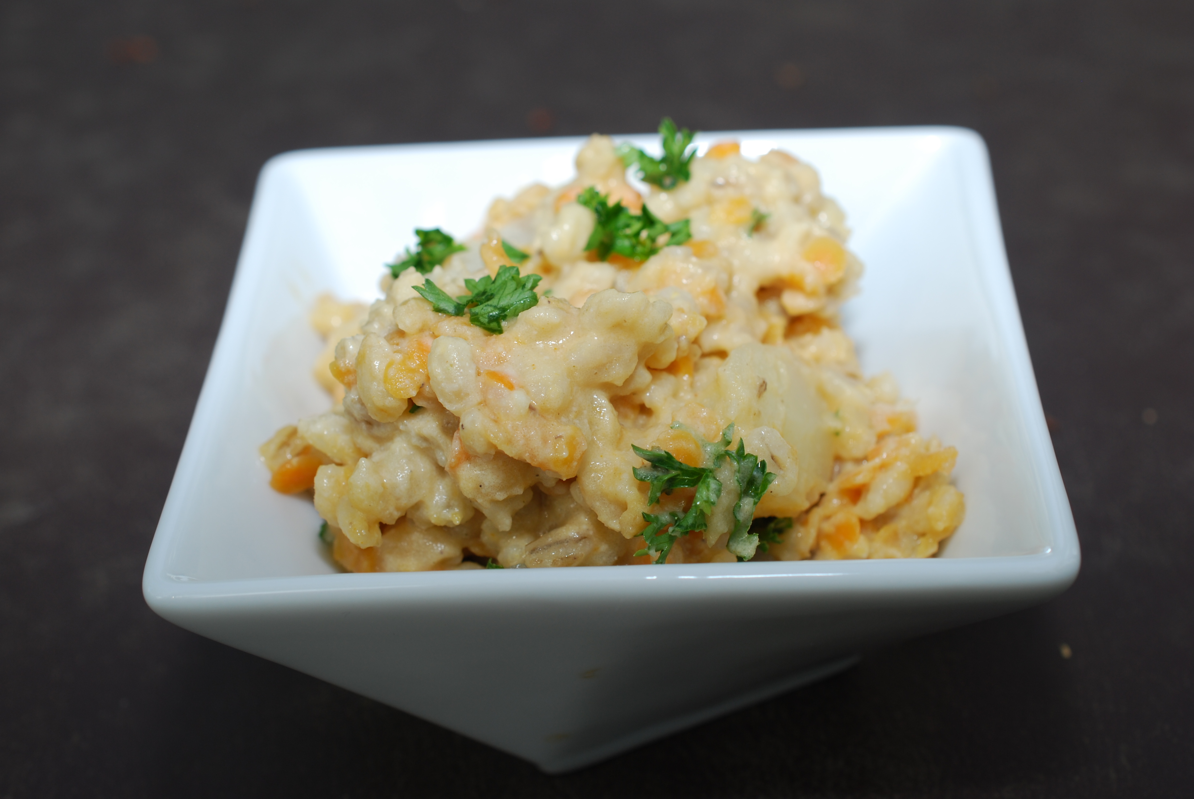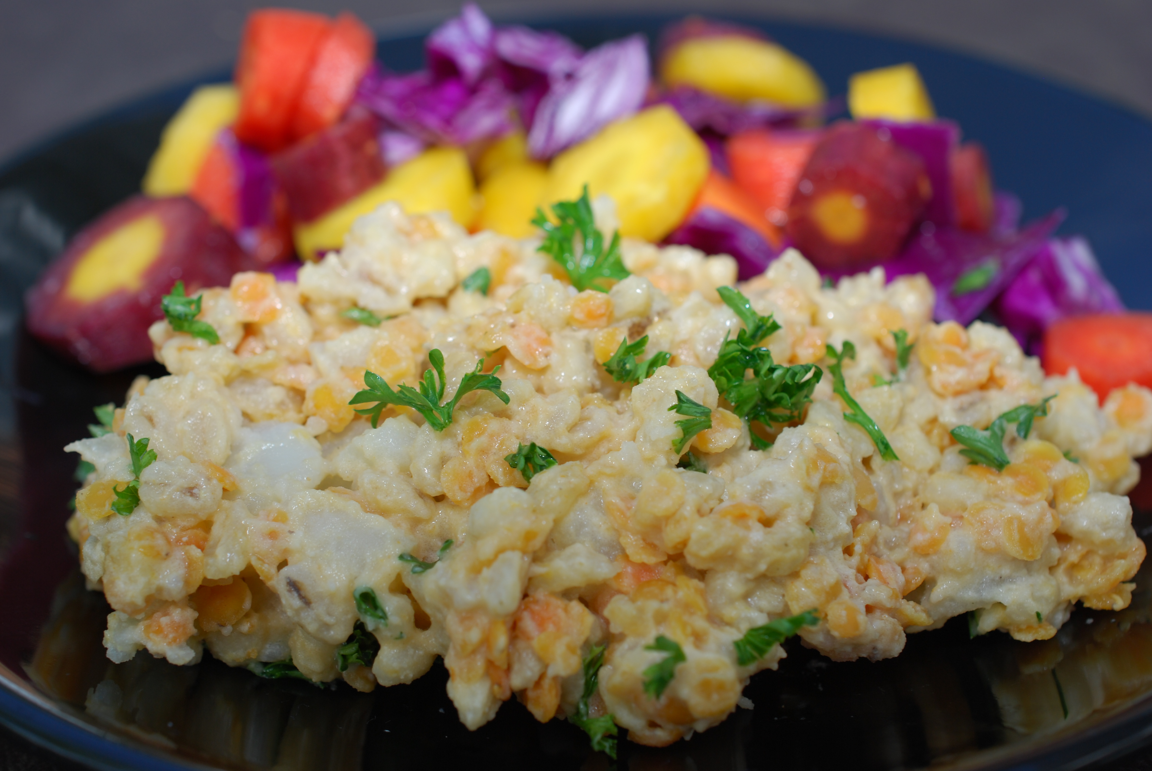 Pour over pasta and combine well with your hands. You can use a spoon, but it really works best with hands!